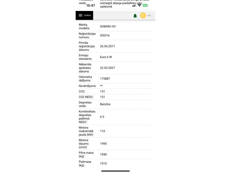 Subaru XV, 2.0 benzīns 110kw, Automāts, 175900km, 04.2017.g. Facelift modelis. Bagātīgs aprīkojums, kurā ietilpst tādas opcijas kā Ādas salons, Zila metālikas krāsa, Klimatkontrole, Borta dators, Riepu spiediena kontrole, Atpakaļskata kamera, Lietus sensors, Kruīzkontrole, Keyless Go, Lūka, 4x4 pilnpiedziņa, Multistūre, Elektriski regulējams šofera sēdeklis, Sēdekļu apsilde, Xenon gaismas, Elektro nolokāmi sānu spoguļi, ESP - pretslīdes sistēma, Oriģināla Multimedija ar LCD Touch Screen ekrānu, MP3, USB, Bluetooth, CarPlay un Hands Free, Isofix stiprinājumi bērnu sēdekļiem un vēl citas ekstras. Auto pirkts jauns no salona Igaunijā, līdz ar to nobraukums ir oriģināls un viegli pārbaudāms arī Latvjas CSDD mājaslapā. Ir arī saglabāta servisa grāmata. -Vairāk informācijas par auto Jūs atradīsiet mūsu mājas lapā www.eauto.lv. Pateicoties 2.0 litru benzīna motoram ar 110kw jaudu un Automātiskai ātrumkārbai, auto ir ļoti dinamisks un tajā pašā laikā salīdzinoši ekonomisks. Vidējais degvielas patēriņš pēc rūpnīcas tehniskiem datiem 6.5l/100km, pa šoseju 5.5l/100km. Auto jau ir piereģistrēts un tehniskā apskate derīga līdz 03.2027.g